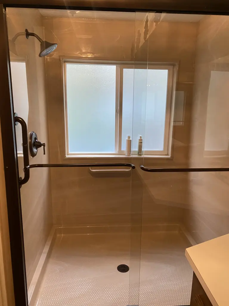 Master bath with custom tile walk in shower
